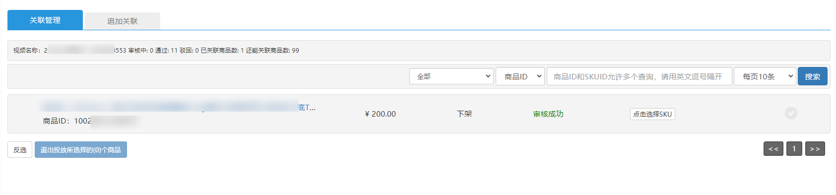 第三步:可通过关联管理查看视频关联商品审核结果(退出视频关联也在此界面操作)