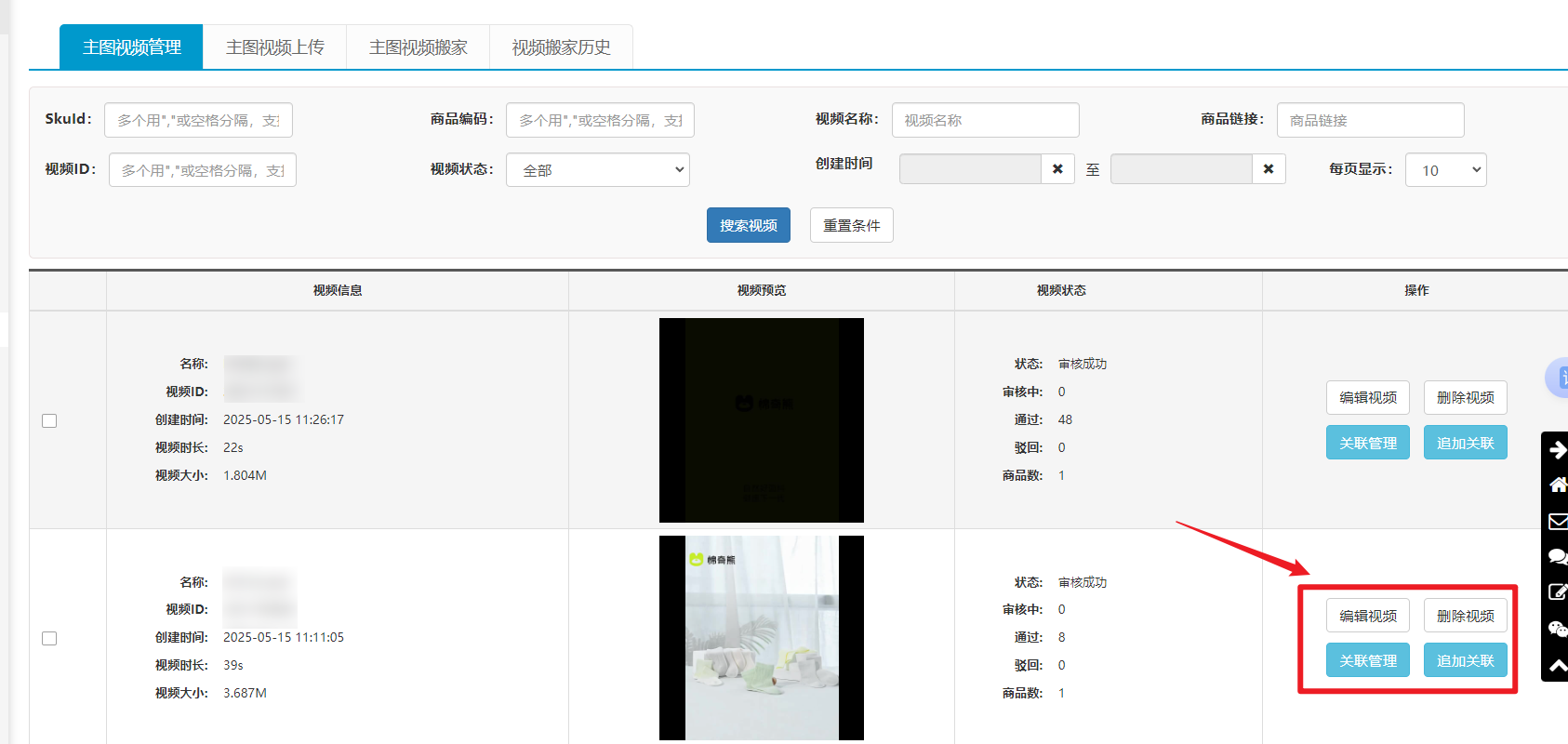 - 主图视频批量管理功能