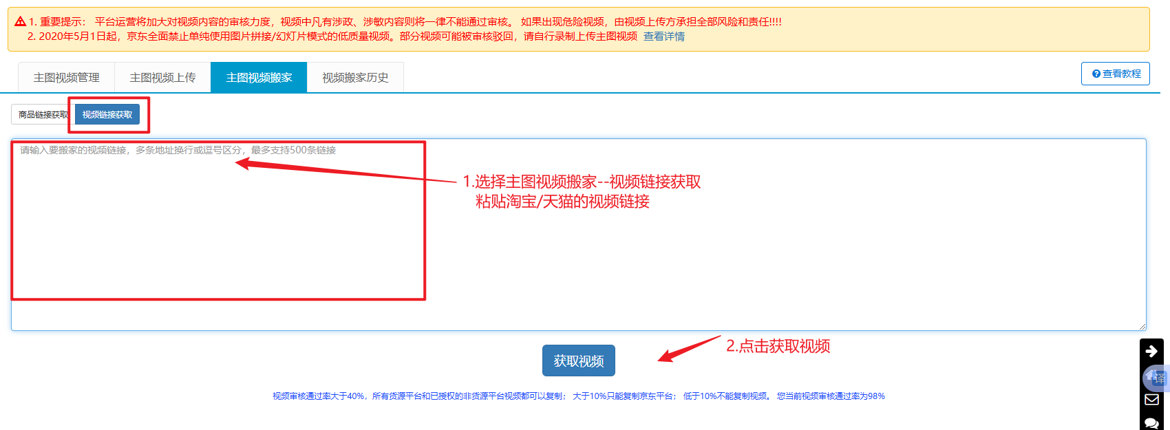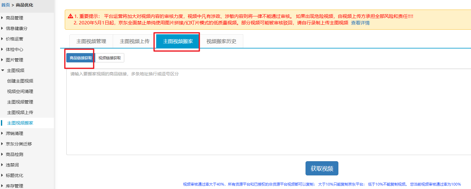 如果是复制京东的视频,需要和来源店铺进行授权,详情查看授权复制教程