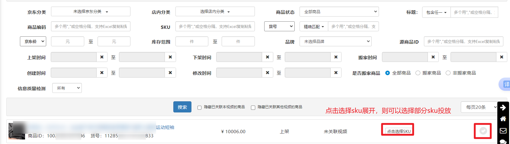 第二步:勾选需要投放的商品