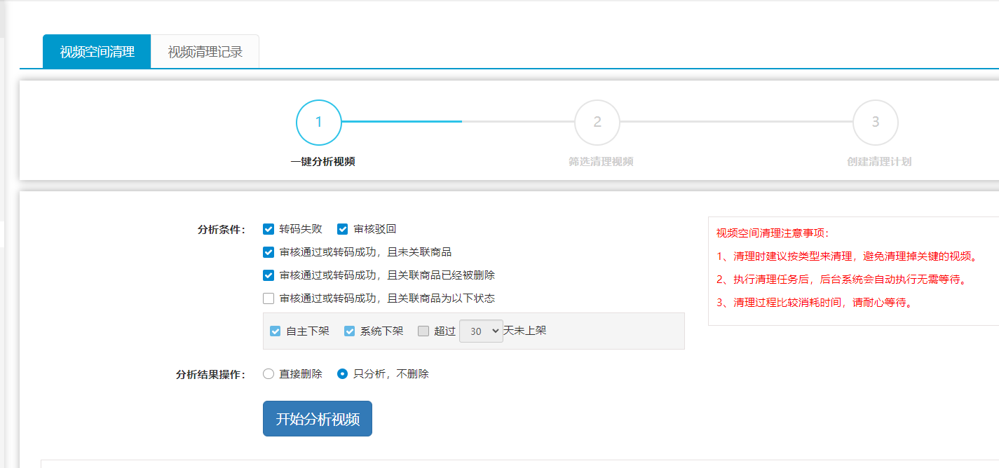 第二步:选择视频空间清理清理条件