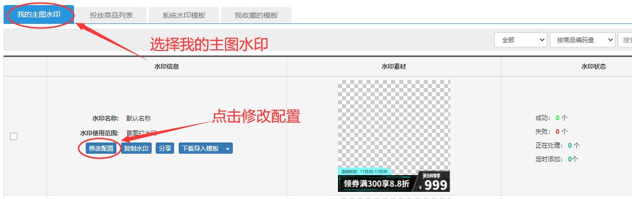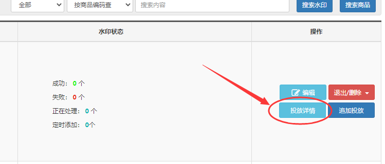 首先在我的主图水印中,找到对应投放的水印模板,查看【投放详情】