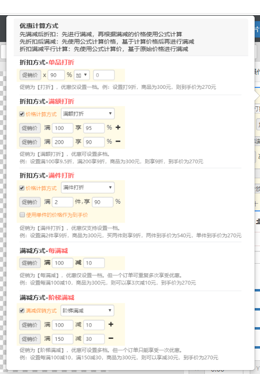 ②.如何设置满减、折扣、满赠等多个活动叠加后的价格?