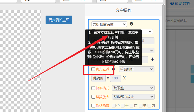 可叠加【官方立减】:官方立减默认与打折、满减平行计算