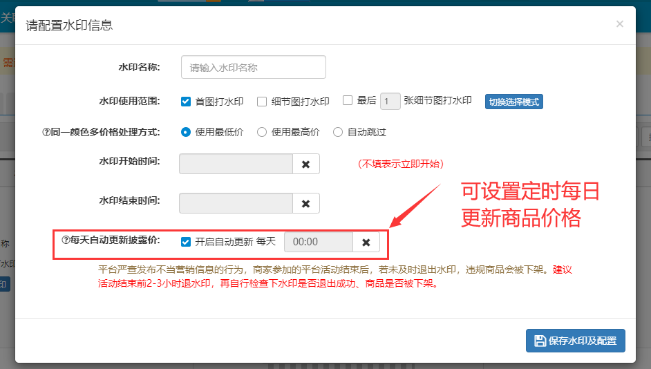我们在设置水印的过程中,会遇到不同商品不同价格的情况,但是我们在全店投放的时候,没有办法做到一个商品一个价格
