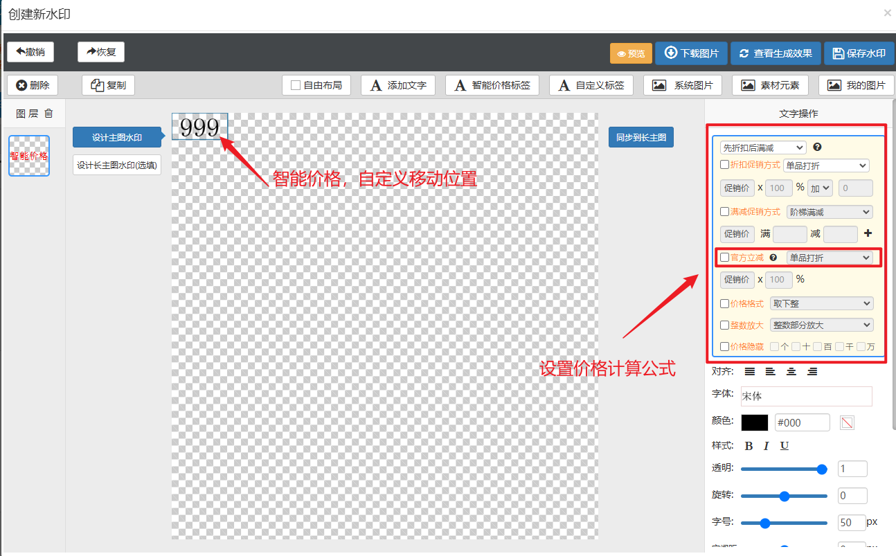 首先我们也是在水印编辑中选择【智能价格标签】进行设置