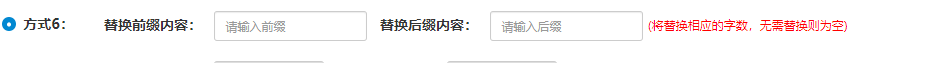 方式6:这个方式的话就是您可以对商品标题的前缀或者后缀进行关键词的替换,比如您前缀输入两个关键词,那么原来标题前面两个文字就会被替换,以此类推。