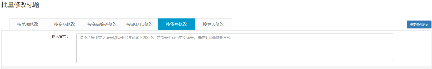 有使用erp,经常使用货号来搜索商品,这个功能就满足需求,系统只会搜索并修改输入的这些货号的商品