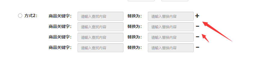 方式2:您可以设置标题的关键词替换,系统会检测和您填写的关键词相关的标题,替换成其他的关键词,点击加号可以添加多个替换任务,减号就是删除替换任务咯。
