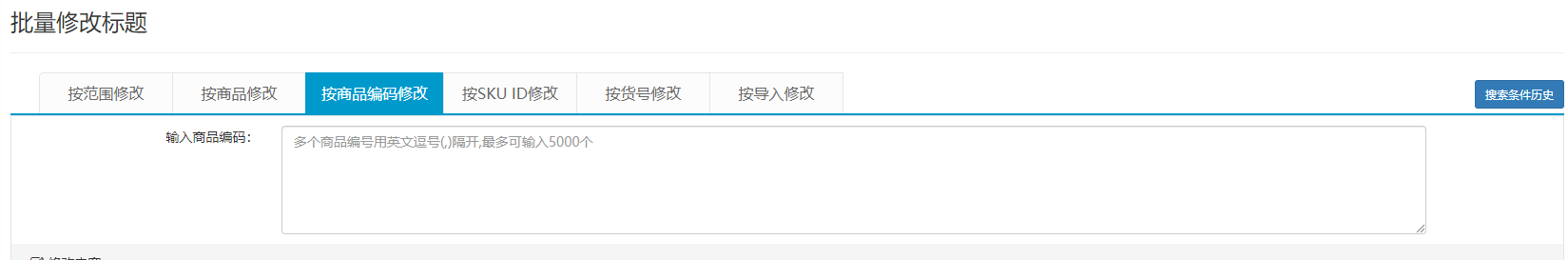 可以通过输入单个或者多个商品编码(SPU),系统只会搜索并修改输入的这些商品编码(SPU)的商品