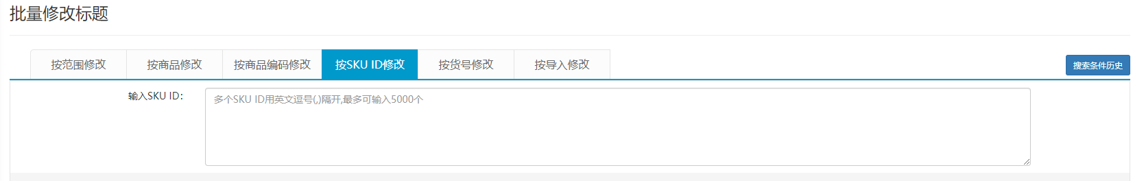 可以通过输入单个或者多个SKU ID,系统只会搜索并修改输入的这些SKU ID的商品