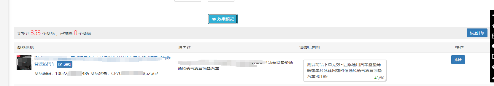 功能主要其实分两个区域,一个是商品筛选区域,一个是修改内容区域。