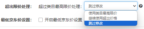 超出限价处理:即当设置的价格,高于平台对类目最大价格的限制时的处理,默认是跳过修改。