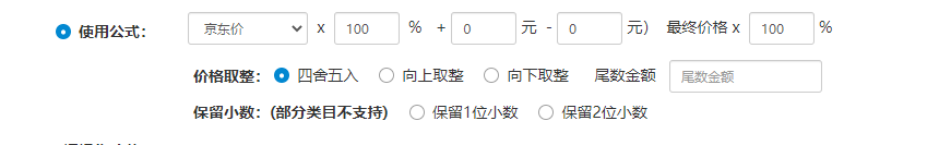 价格的处理也有:四舍五入,向上取整,向下取整,尾数设置为数字0~9的设置,如果有小数点,则可以保留小数1位或者2位小数(部分类目不支持)