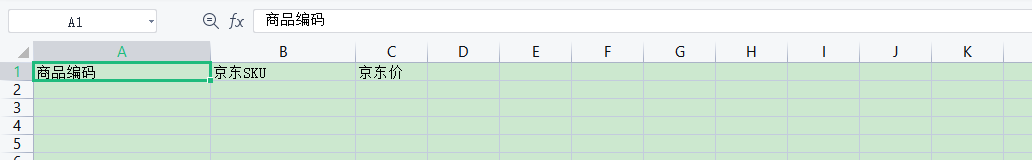 导入的话,可以点击下载我们系统自带的表格模板,在表格中填写需要修改的商品编码(spu),京东sku(skuid)并且分别对应填写新的京东价格内容