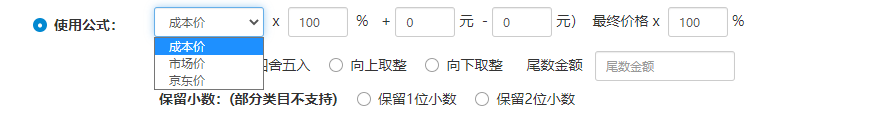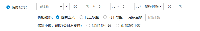 价格的处理也有:四舍五入,向上取整,向下取整,尾数设置为数字0~9的设置,如果有小数点,则可以保留小数1位或者2位小数(部分类目不支持)