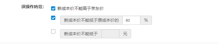 误操作防范:该功能是可以设置您新成本价格的最低阀值,尽可能的避免因价格设置过低造成的损失,建议亲们修改价格的时候多留意设置哦
