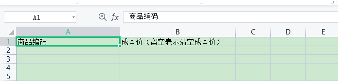 导入的话,可以点击下载我们系统自带的表格模板,在表格中填写需要修改的商品编码(spu),并且分别对应填写新的成本价格内容