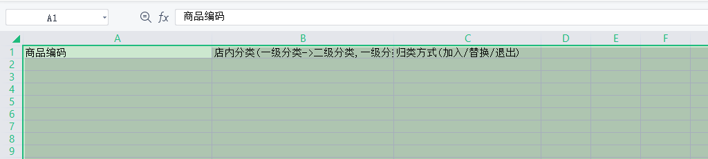 2.替换--即将商品从原来的店内分类退出,投放到表格设置好的店内分类中