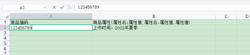 导入的话,可以点击下载我们系统自带的表格模板,在表格中填写需要修改的商品编码(spu)和对应的商品属性内容