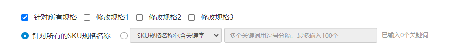 可以通过输入单个或者多个SKU ID,系统只会搜索并修改输入的这些SKU ID的商品。