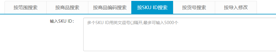 可以通过输入单个或者多个SKU ID,系统只会搜索并修改输入的这些SKU ID的商品。