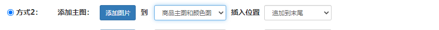方式2: 添加主图,即选定某一张图片,批量插入到商品主图或颜色图的指定位置。