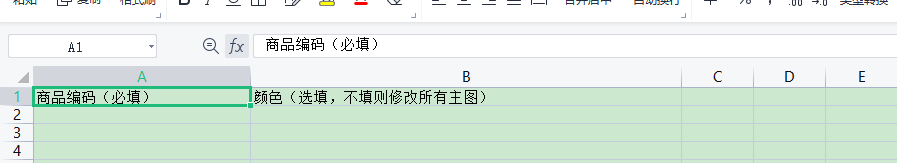 2.下载按颜色图导入模板,即填写的是商品编码以及对应的颜色sku名称