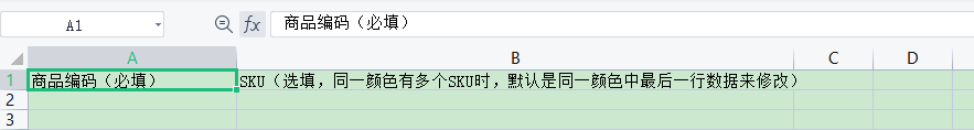 3.下载按sku图导入模板,即填写的是商品编码以及对应的颜色skuid