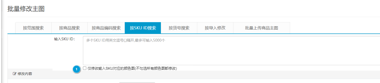 可以通过输入单个或者多个SKU ID,系统只会搜索并修改输入的这些SKU ID的商品。