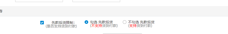 勾选先款后货限制,根据需要,选择是否勾选先款后货,其他功能不修改则无需勾选