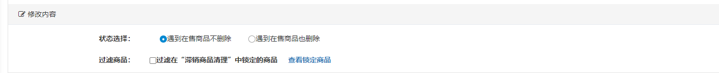 状态选择可以设置遇到在售商品是否删除,避免因失误导致的在售商品被删的情况;