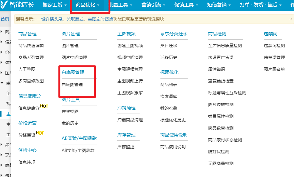 路径:商品优化--白底图管理--全店批量设置白底图