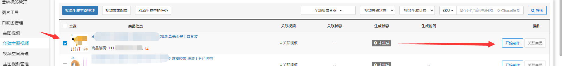 (2)单个商品生成主图视频: