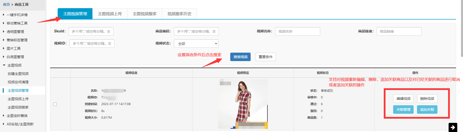 三、主图视频管理 快捷入口:点击查看