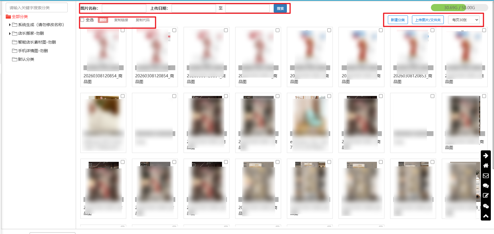 可支持在软件删除图片、新建空间分类、批量上传图片、复制图片链接、复制代码等操作。