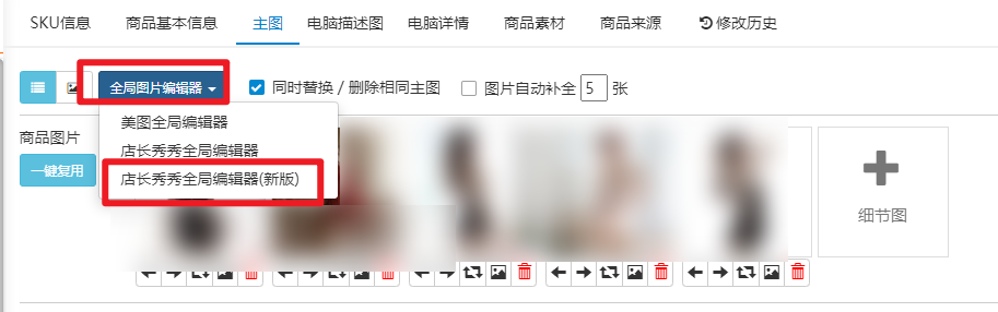 选择主图(电脑描述图同样具备功能,以下内容以商品主图为例)--全局图片编辑-选择店长秀秀新版