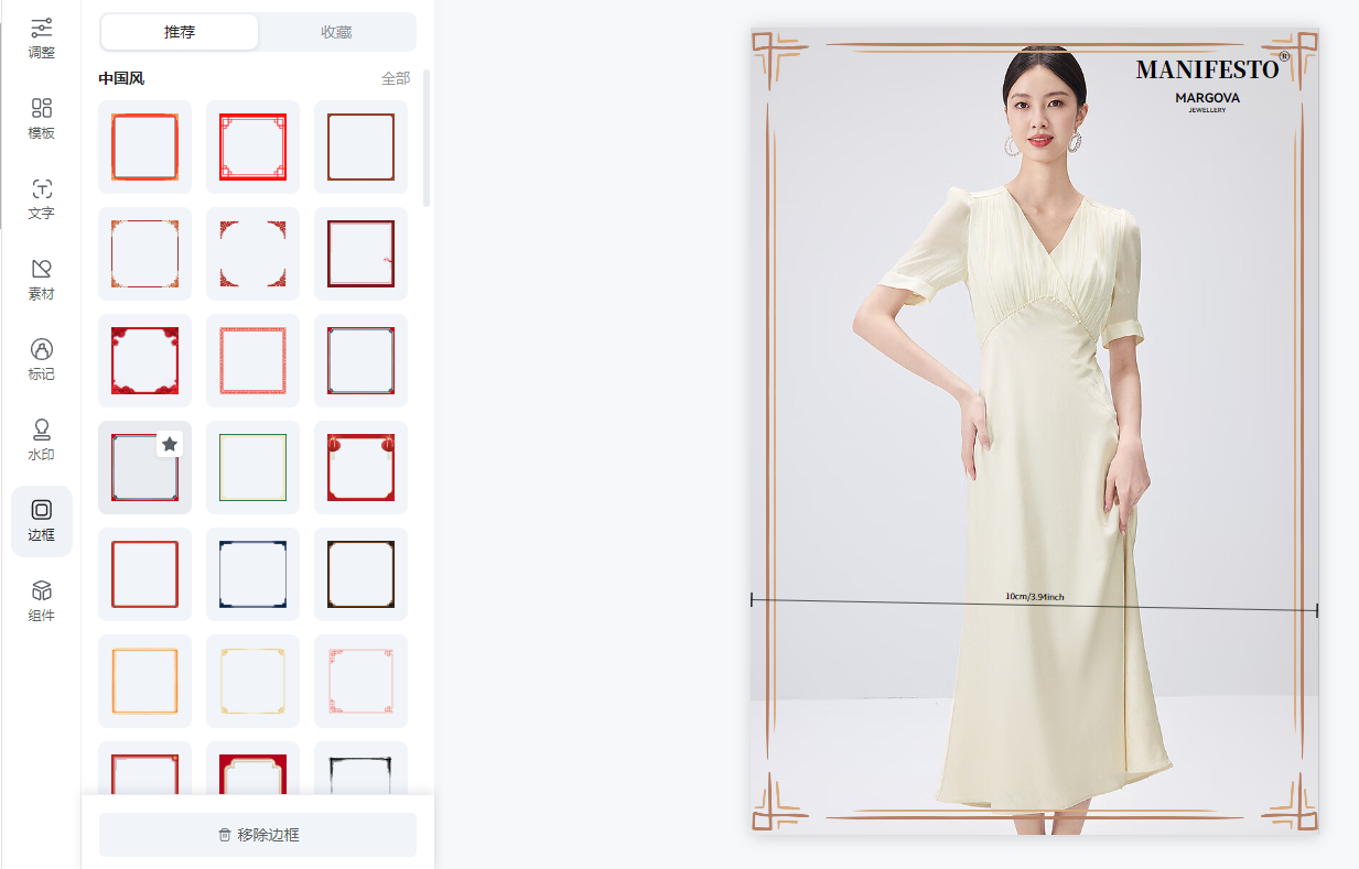 ⑦边框:系统提供了诸如中国风、简约风、复古风等风格的图片边框供商家选择
