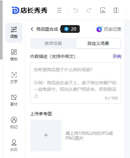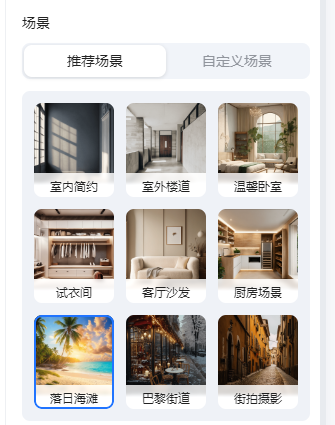 可以使用系统提供的图片背景或者自定义场景的方式更换商品主图背景