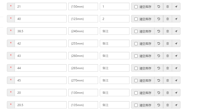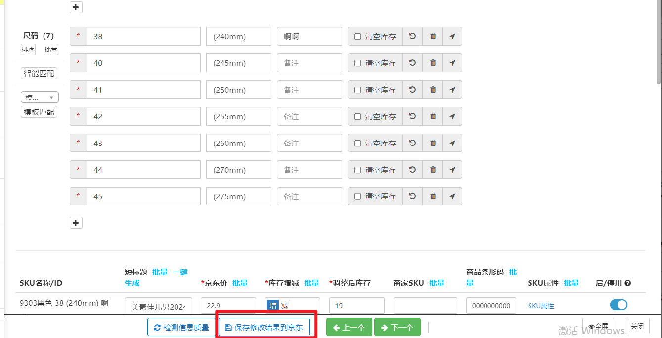 2、尺码设置需保持同一类型,若尺码中包含多个类型则跳过,如同个商品中尺码既包含【欧码】又包含【美码】