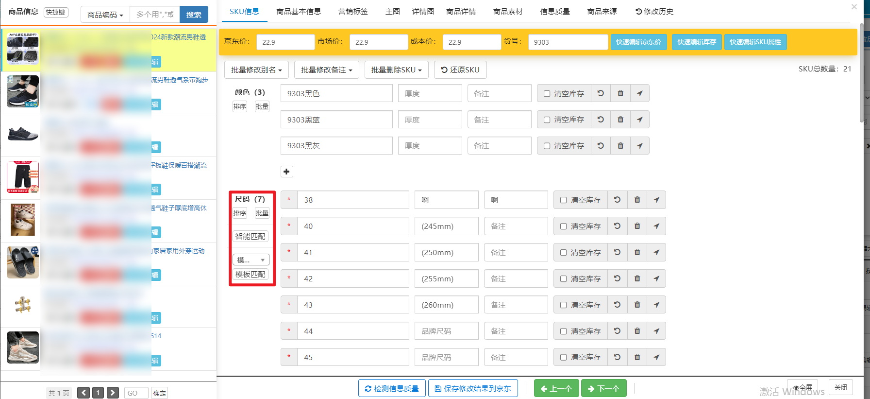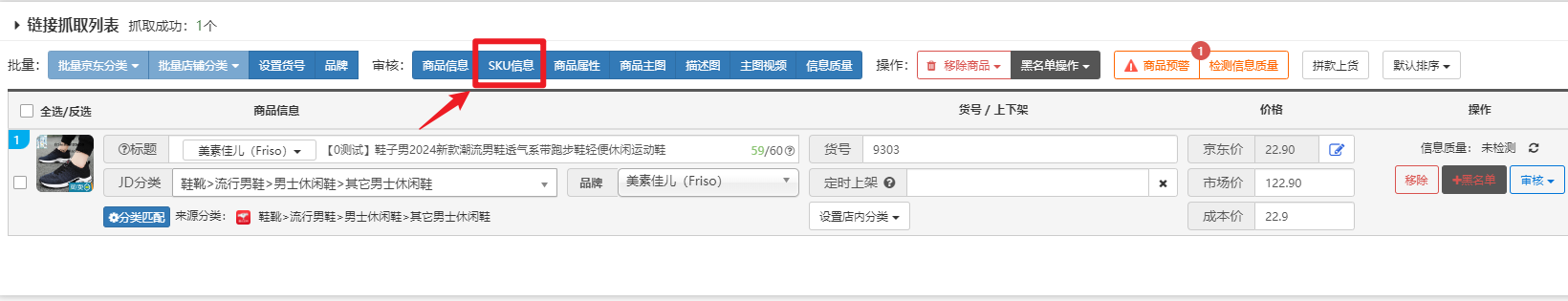 在商品审核页面,选择SKU信息,进一步优化尺码信息