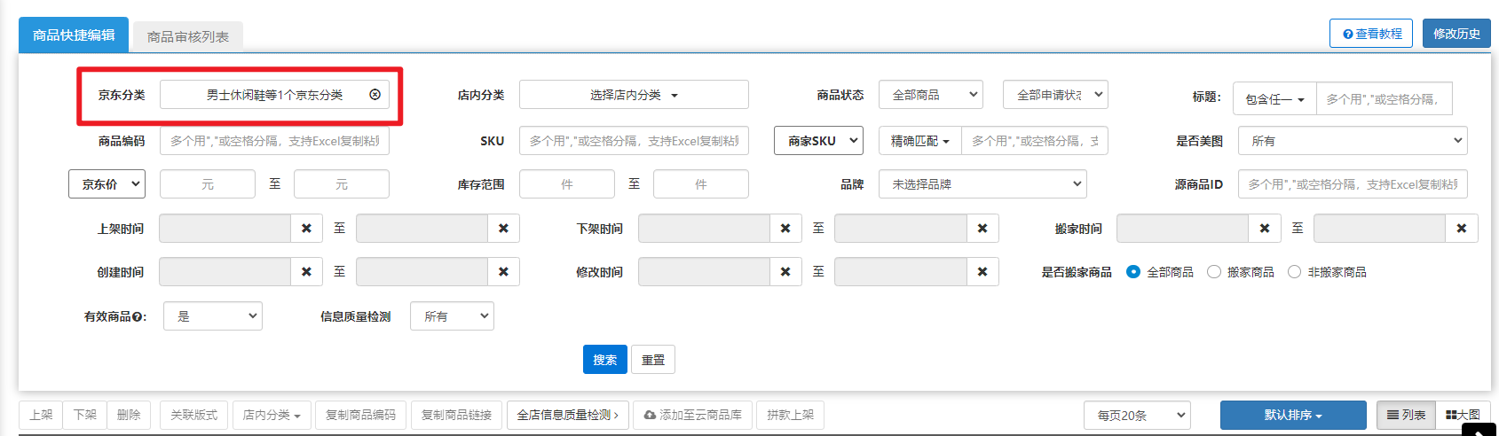 按范围修改:适合大量并且统一的商品,比如全店商品修改或者选择京东分类里面其中的某个或者某几个的类目商品等等。