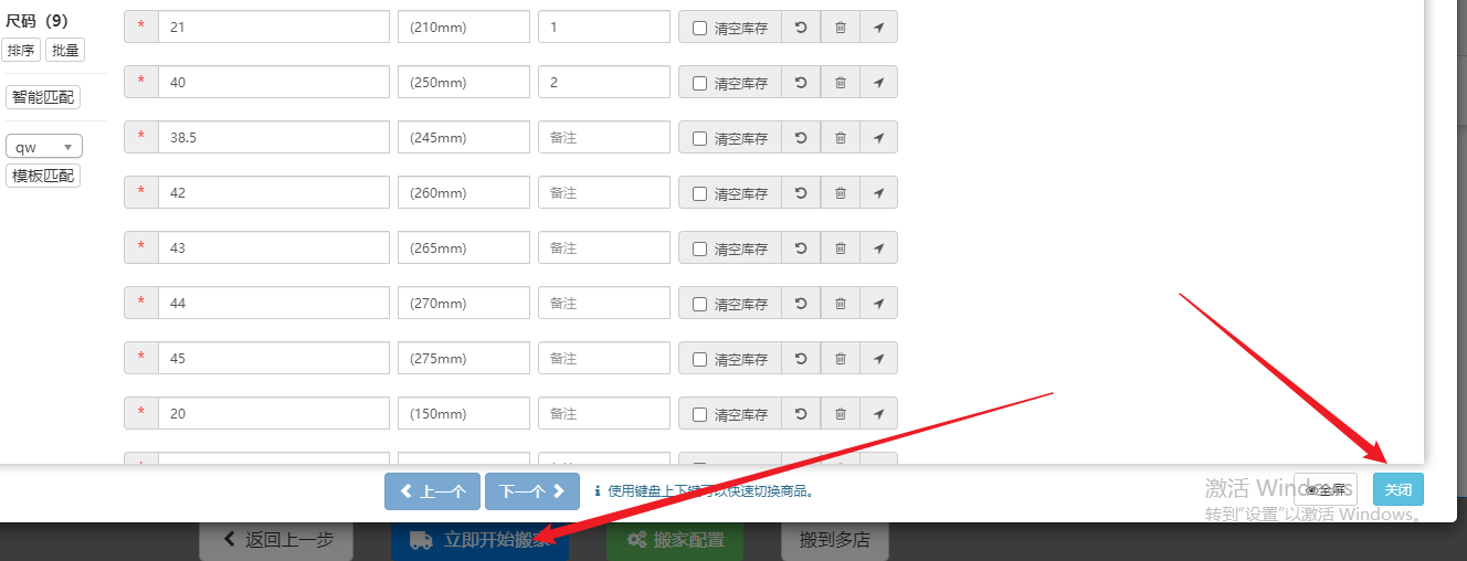以下以单品搬家商品为例,学习如何快速优化鞋服尺码