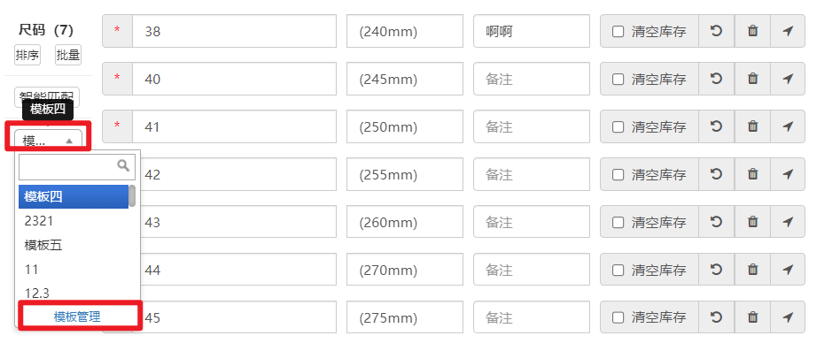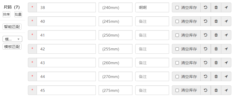 存量商品方案三:商品快捷编辑功能--快速优化尺码