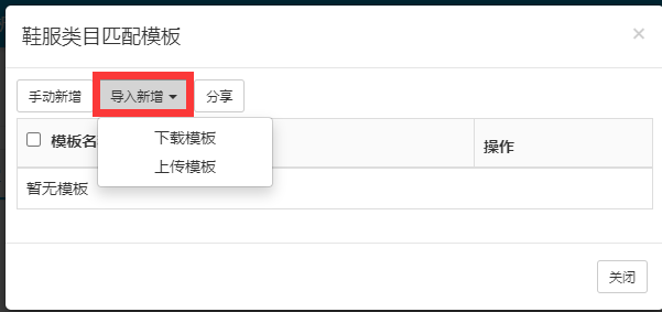 方式二:模板匹配,需要商家先进入模板管理新建一个鞋服类目匹配模板