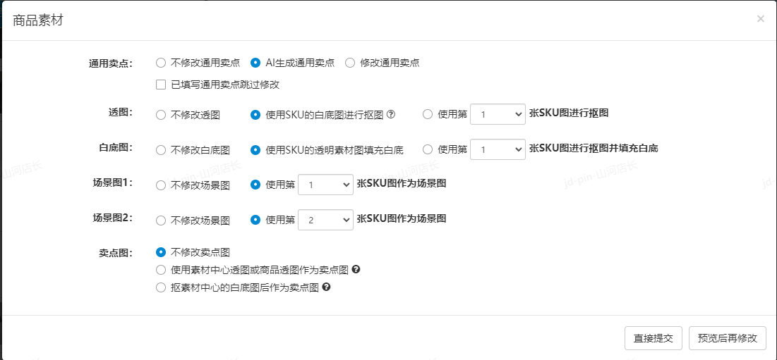 商品素材分为:通用卖点、透图、白底图、场景图以及卖点图五种