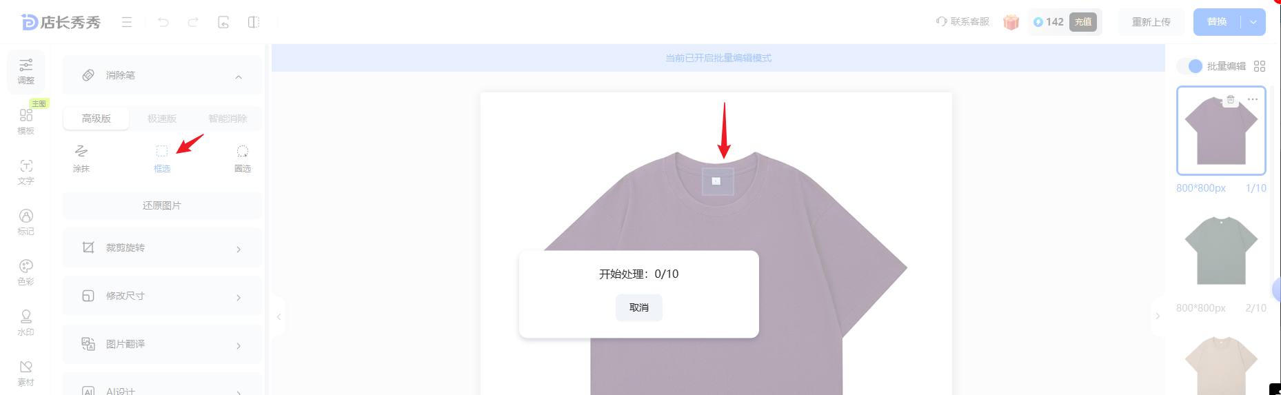 以高级版为例,选择框选的方式,按住鼠标左键并拖动画出需要消除的区域,放开后系统则自动开始处理,如下图所示