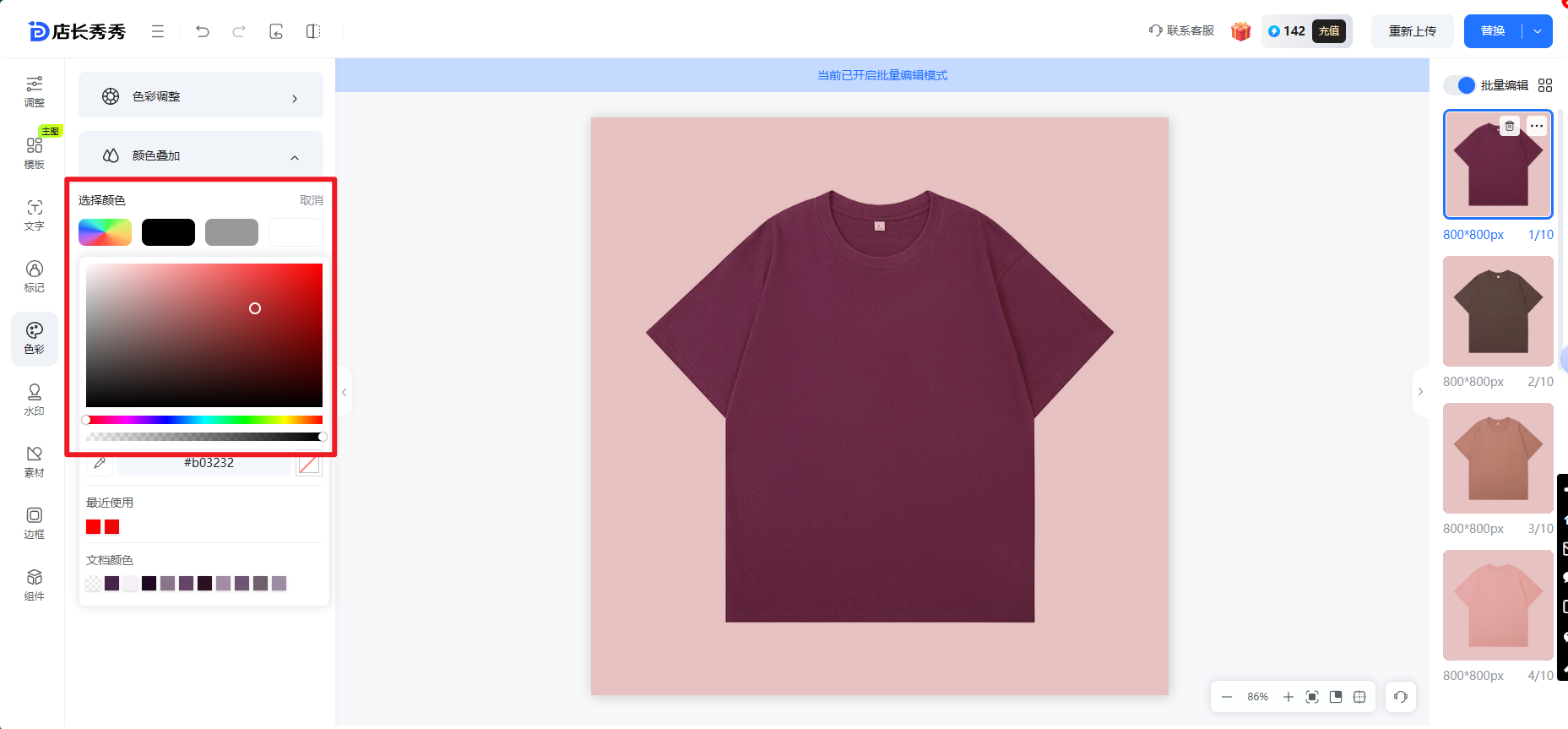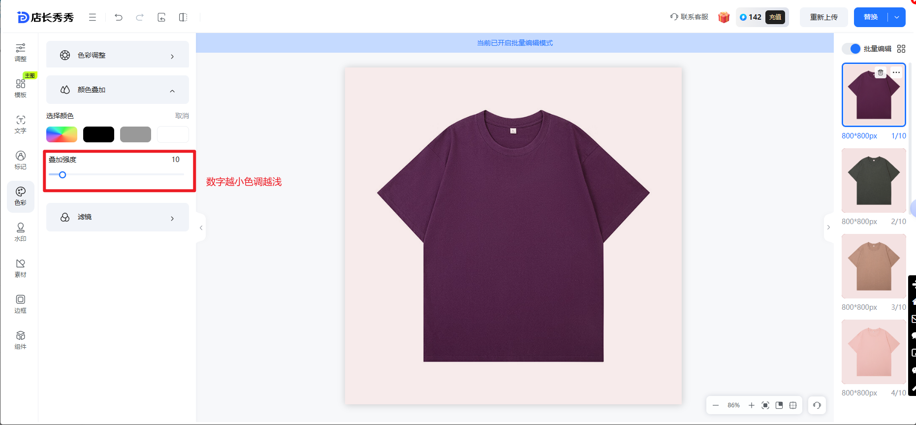 ⑤叠加颜色与色彩调整:对图片色彩、亮度、对比度、颗粒度、滤镜等等批量进行处理