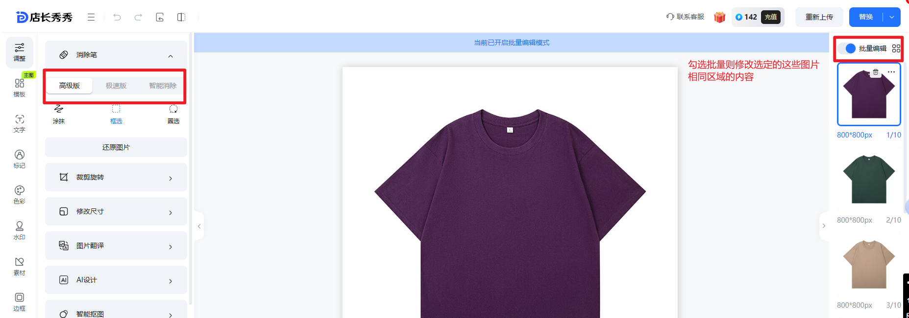 消除笔 裁剪 修改尺寸 打LOGO 叠加颜色 色彩调整 删除图片