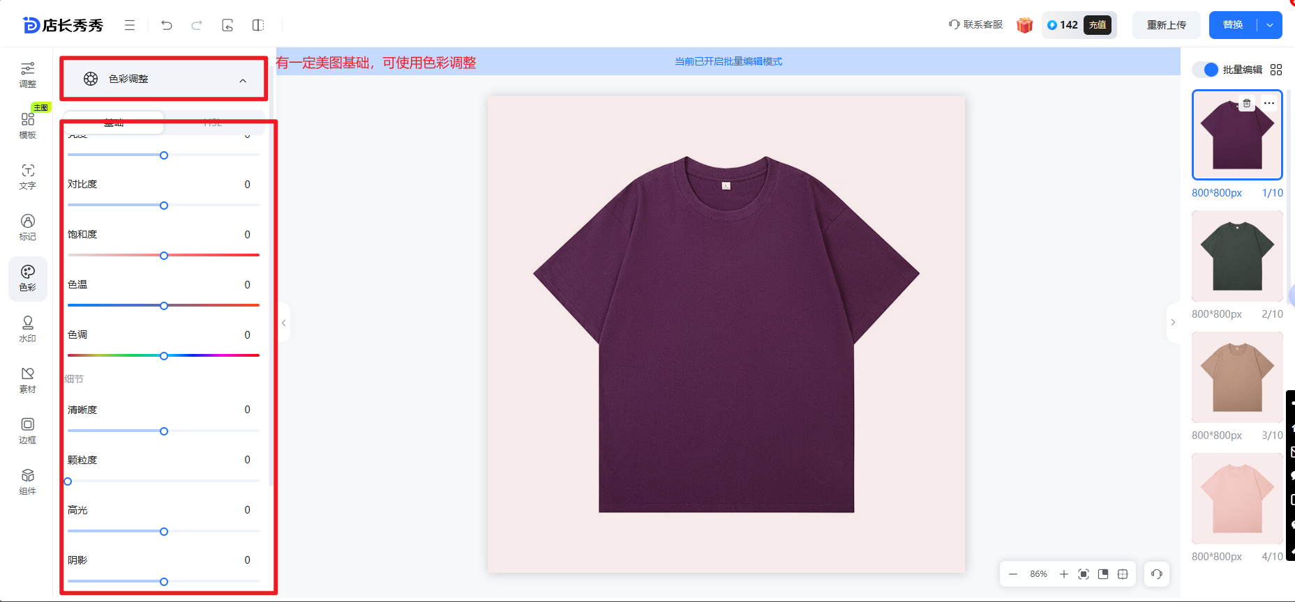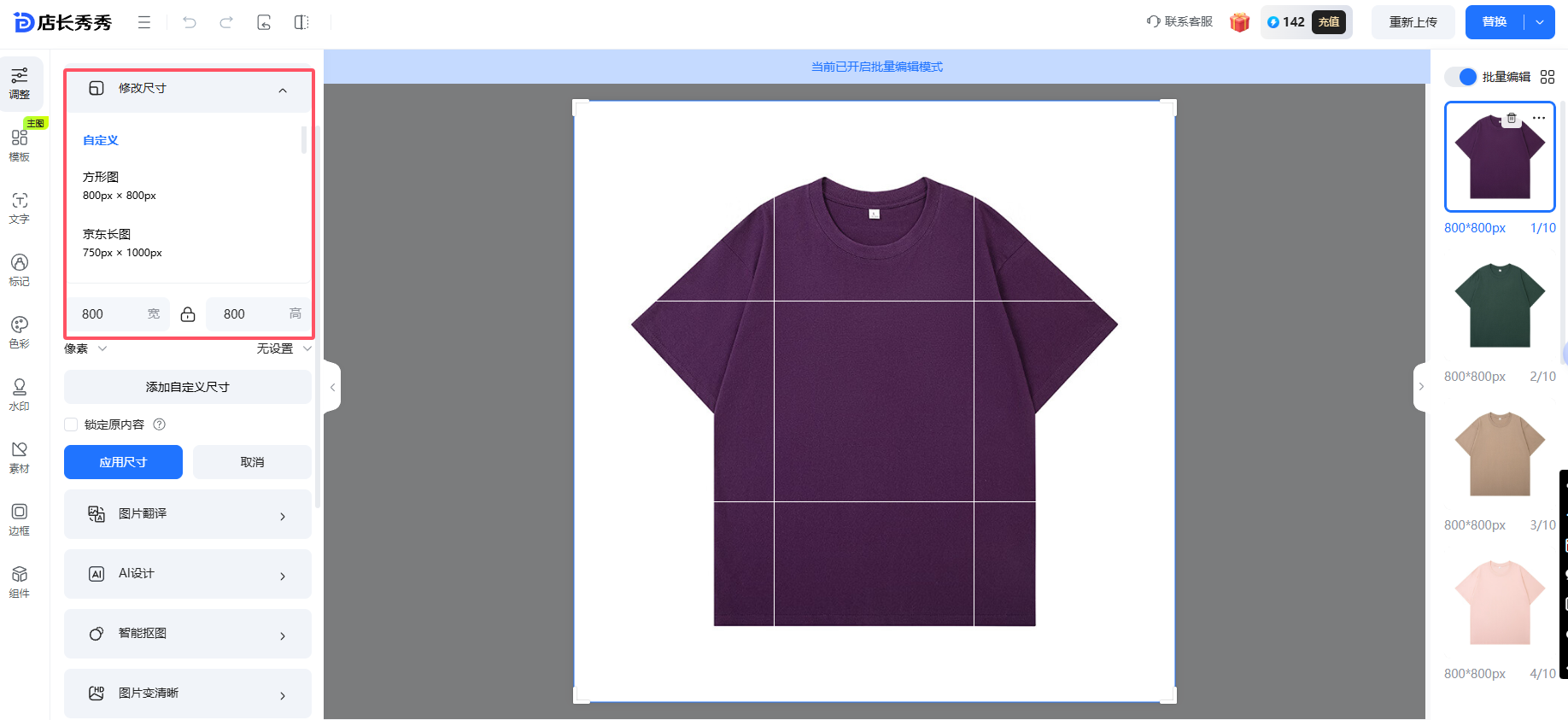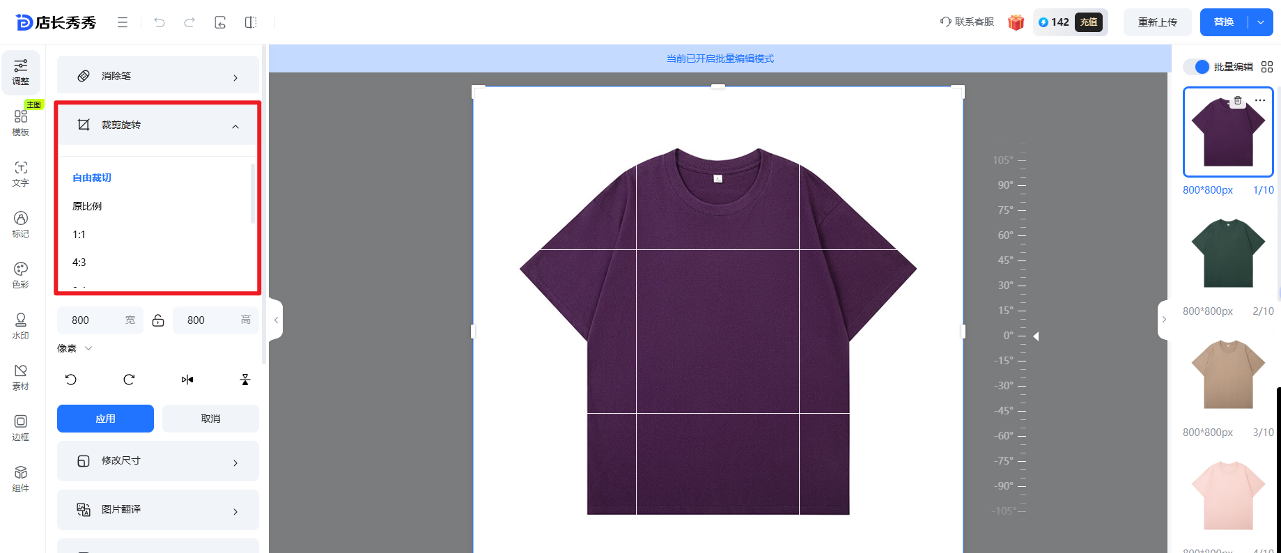 ②裁剪:可根据自身需求,按不同的比例批量修改主图的大小